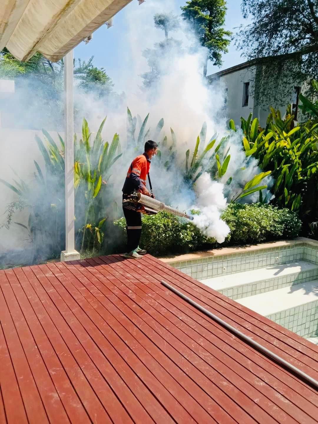 - วิธีการอบควัน การใช้สารเคมีในกลุ่มไพรีทรอยด์ ผสมกับน้ำมันก๊าดสกัดกลิ่น โดยใช้กับเครื่องพ่นหมอกควัน ให้ความร้อนเผาไหม้น้ำยาเคมีชนิดน้ำออกมาในรูปลักษณะของ “ควัน” เมื่ออบควันเสร็จเรียบร้อยแล้วทิ้งไว้อย่างน้อย 2-3 ชั่วโมง เมื่อพ้นระยะเวลาควรเปิดประตู หน้าต่างให้อากาศถ่ายเท หรือระบายกลิ่นของสารเคมี ไม่สมควรให้บุคคลที่ไม่มีหน้าที่เกี่ยวข้อง เข้าไปในพื้นที่ ที่ทำบริการจนกว่าจะมีการระบายอากาศให้เรียบร้อยก่อน สภาพพื้นที่เหมาะสำหรับอบควันคือ พื้นที่ภายในอาคาร ท่อระบายน้ำทิ้ง เป็นต้น